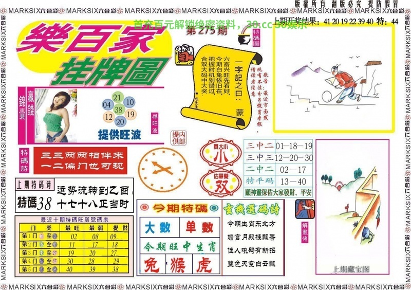 280期:六合三怪/内部平特诀/独家六合玄机/六合对诀/波色输尽光