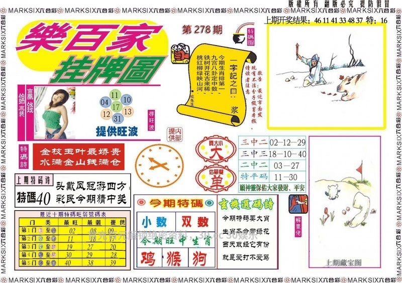 280期:黄大仙心水/简单好下注/台湾玄机诗/港台澳七肖/必中人物